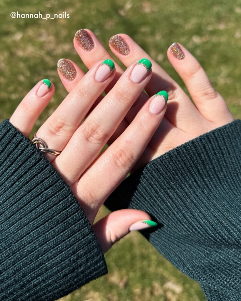 6. Green French with Gold Glitter