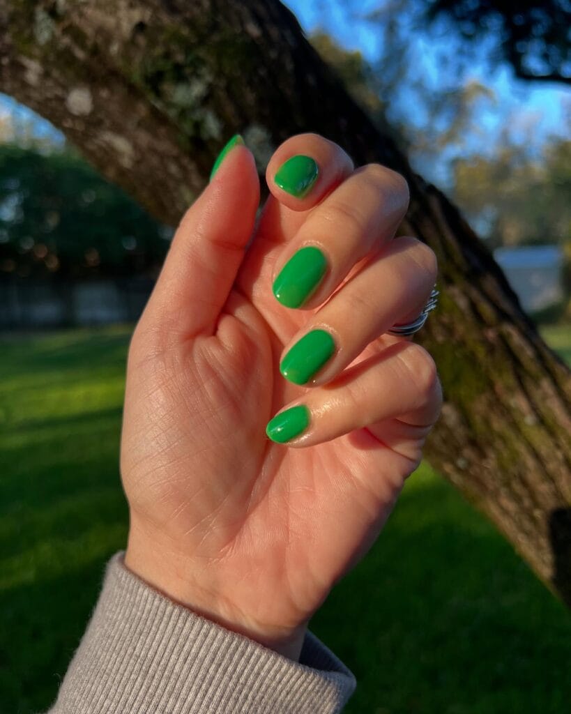 Sometimes simple is best. This classic kelly green manicure is bright, cheerful, and unapologetically festive. The glossy finish gives it a polished look, while the vibrant shade makes a statement without needing any nail art. It’s the perfect choice for anyone who wants an easy, no-fuss St. Patrick’s Day mani that still packs a punch.